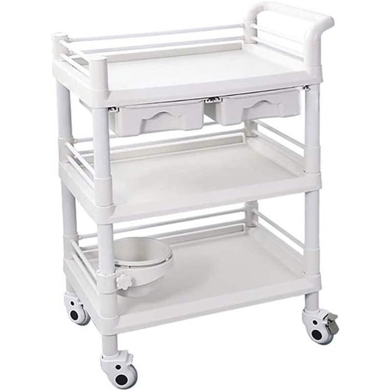 Maximize space and mobility with the Professional 3 Tier Mobile Trolley. Designed with ABS for durability, 4 wheels (2 with brakes), and 3 tiers of storage with a 2 drawers and waste bin, this mobile cart is perfect for food service, medical equipment, laboratories, and other applications. Discover how it can transform your workflow.