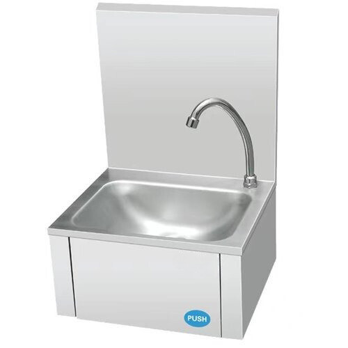 Thanks to its knee operated design, this hands free professional hand sink helps reduce the risk of cross contamination in your busy commercial kitchen or industrial location.The hands free hand sink is made of durable 304 series stainless steel. A gooseneck faucet is included and it also includes a high backsplash. A must have for any catering establishment.