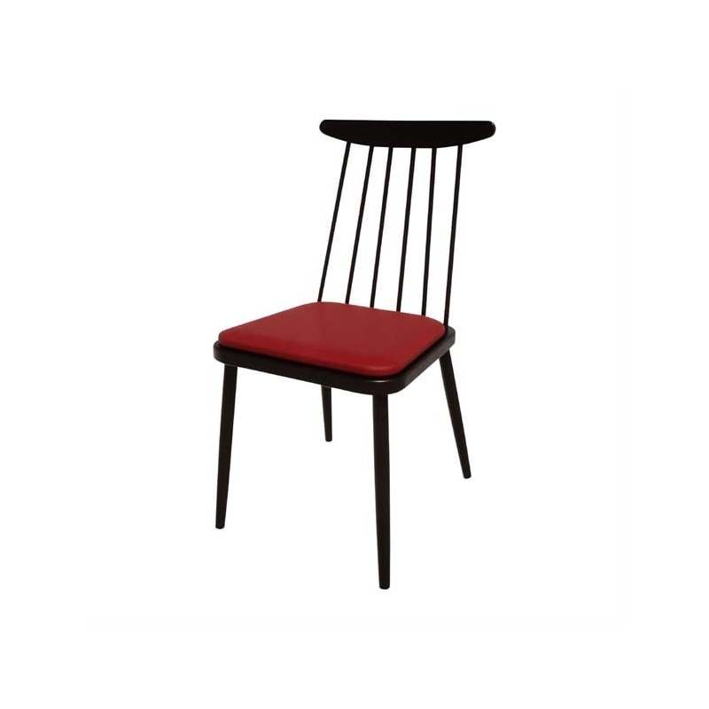 With its curved back, red seat pad and charcoal-inspired frame, the Bolero Frank side chair from the Bespoke range adds a stylish and retro touch to any venue. Made from robust hardwood, the chair's frame is able to handle even the most demanding of commercial use without damage. The wood is carefully selected for its strength and aesthetics, ensuring that the chair not only stands up to the rigours of daily use but also adds a touch of elegance to any environment.