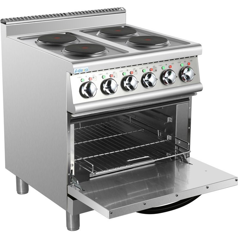 Commercial Electric Cooker 4 Burners with Electric Oven 8kW+4.8kW 700mm Depth | Stalwart DA-HRQ712A
