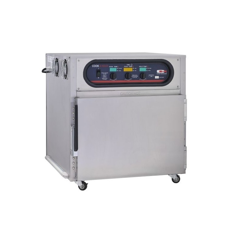 The Cook and Hold cabinet’s gentle convection roasting produces a deliciously tender roast, naturally browned to perfection. Saving you time and labour, the unit can be set to cook to a certain time or temperature. Food shrinkage is greatly reduced due to the precision engineered interior heat duct system which gently circulates even heat throughout the cabinet. This also improves the quality of the food, encouraging caramelisation and moisture retention, resulting in consistently tender meats. The Cook and Hold has lower BTUs than most convection ovens, meaning that energy costs are much lower. Cleaning is also simplified, thanks to the removable stainless steel tray racks, and stainless steel exterior.