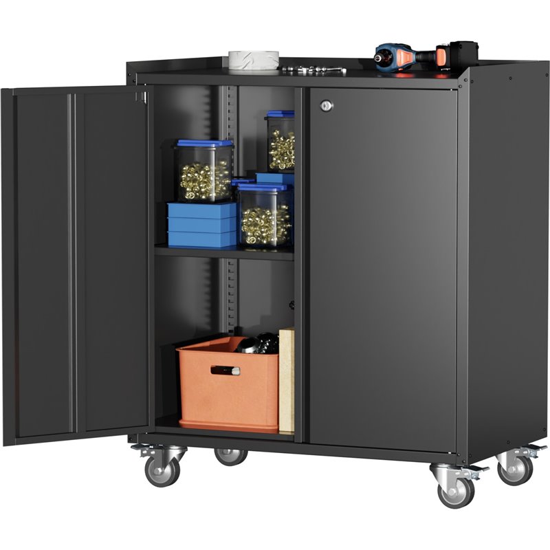 Elevate your storage with this sleek steel mobile cabinet featuring an adjustable shelf and double hinged doors. Durable powder coating ensures a long-lasting, stylish look for your home or office. A bargain at this discount price.