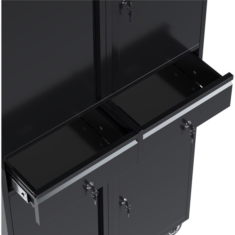 Commercial Mobile Black Steel Cabinet 4 Doors 2 Drawers 760x380x1800mm | Stalwart DA-SART210