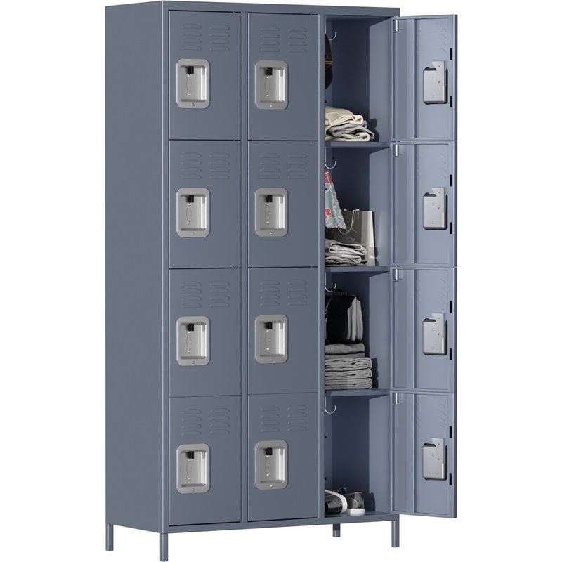 Ideal for company changing rooms and locker rooms, this locker features 12 separate compartments with doors, providing ample storage space for keeping clothes and other personal belongings safe.