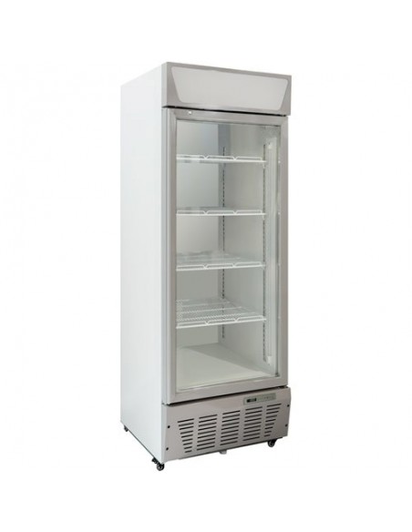 Large capacity glass door upright display fridge. An easy to clean, low maintenance high quality refrigerated cooler and ideal as a multi functional drinks chiller.