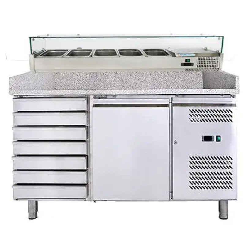 Pizza Prep Table 1 Door 7 Drawers Counter Top Display 7xGN1/4 | Stalwart DA-THPZ1610TN+PT15