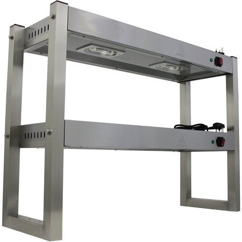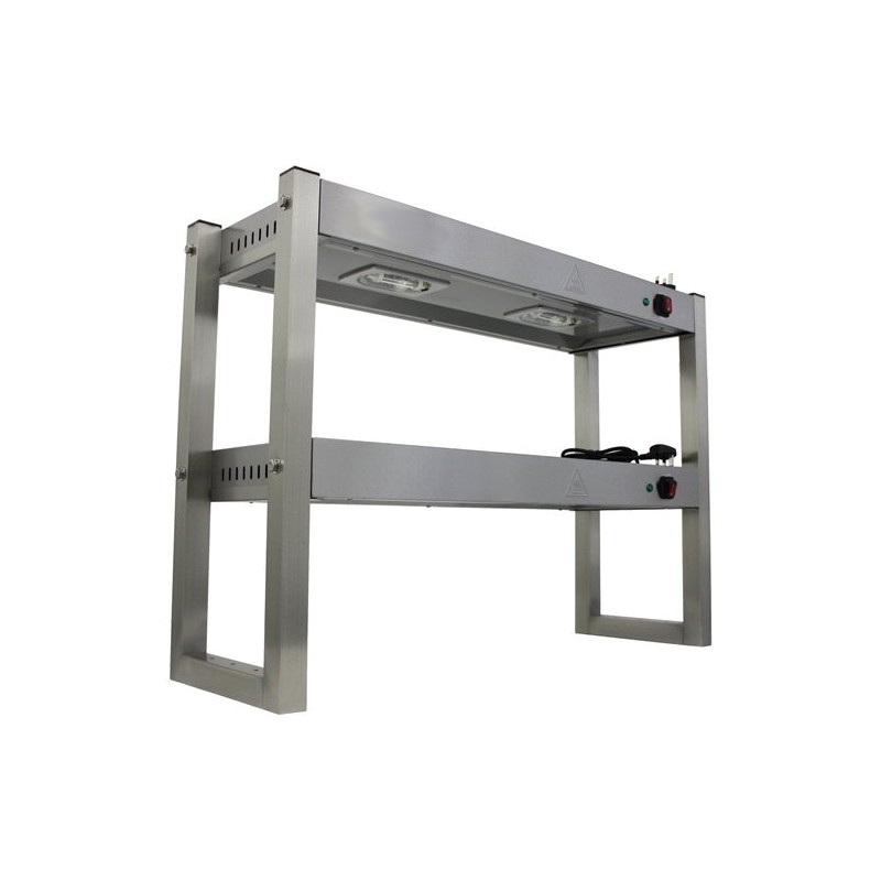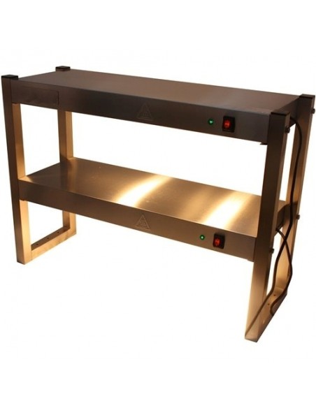 This premium electric heated two tier gantry is ideal for any catering establishment. A solid stainless steel construction and heated lights ensuring this chefs pass keeps food warm while waiting of expedition. So that food is kept at a safe, ready to serve temperature.