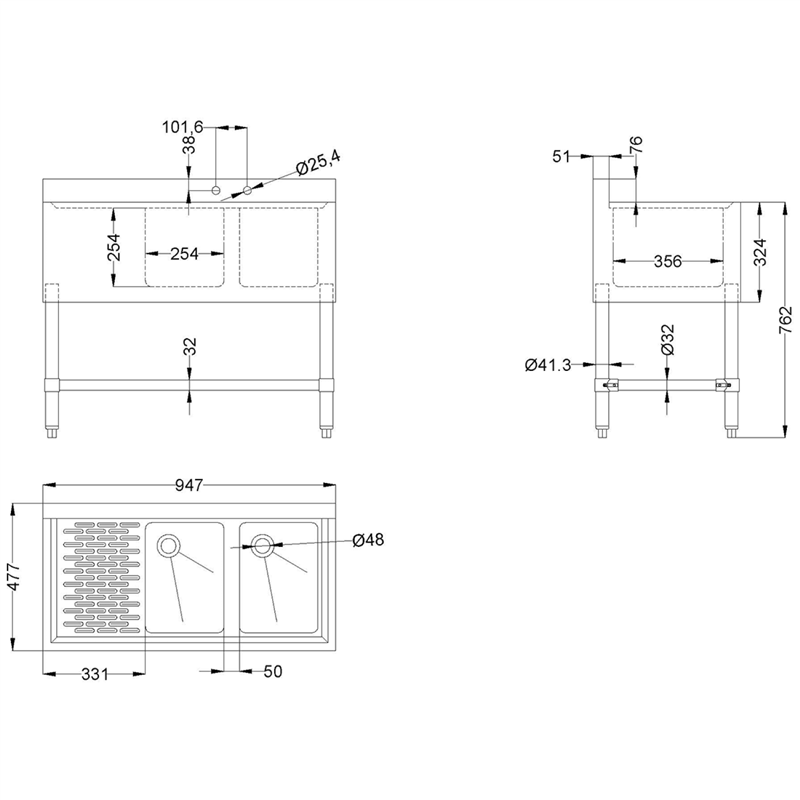 Commercial Bar sink 2 bowls Right 900x470x860mm | Stalwart DA-BAR2B36L