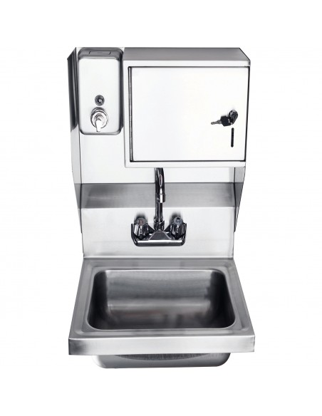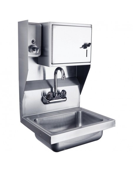 Wall mounted Hand Sink with Faucet & Automatic Soap dispenser & Paper towel dispenser Side splash Stainless steel | Stalwa