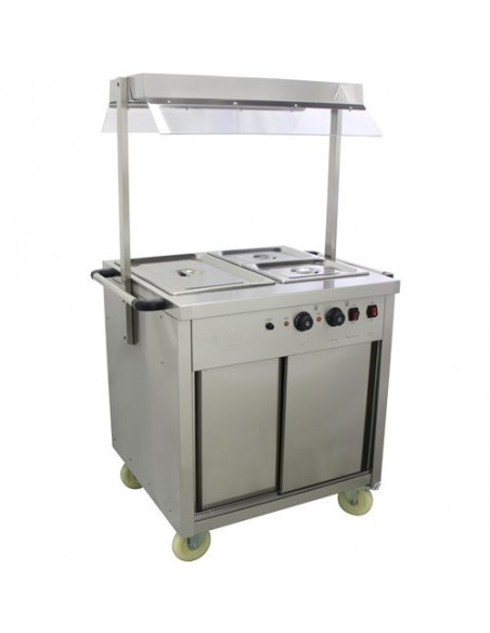 Mobile Bain Marie top Hot Cupboard with Heated Sneeze Guard | Stalwart DA-YH2W