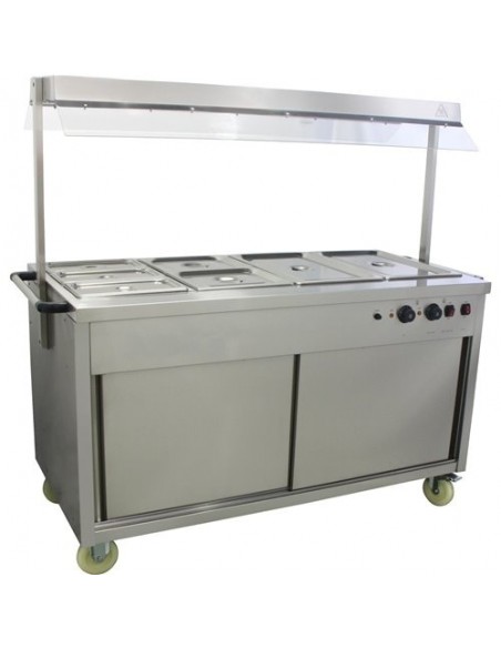 Mobile Bain Marie top Hot Cupboard with Heated Sneeze Guard | Stalwart DA-YH4W