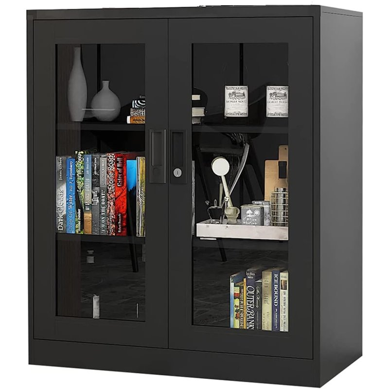 Commercial Metal Black Storage Cabinet with Glass doors 900x400x900mm (Pack of 2) | Stalwart DA-MYOC03BLACK