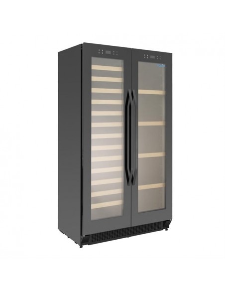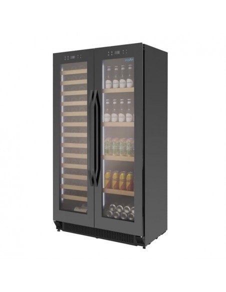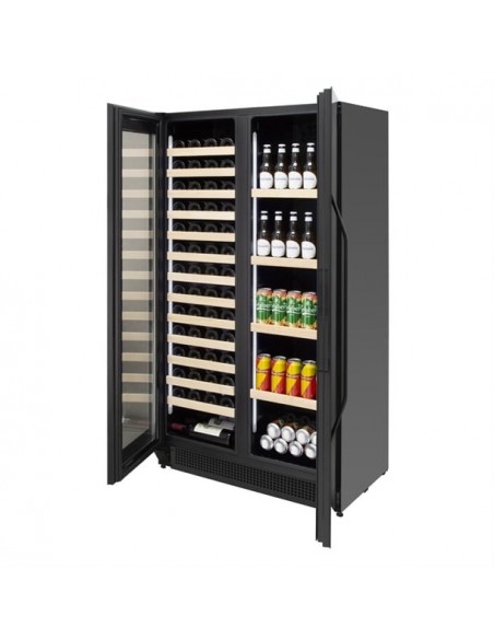 On the left hand side, the cool zone is designed to store up to 60 wine bottles (Bordeaux style) at the perfect temperature, set by the intuitive digital controller. On the right side, the four shelves offer capacity for bottles, cans and cartons. Independent controls for both sides provide impressive temperature control, allowing you to keep the contents on both sides at different temperatures.