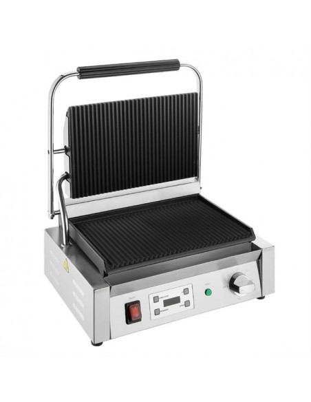 With its rapid heat-up and generously-sized enamelled cast iron grilling surface, the Buffalo extra large ribbed contact grill is a powerful and reliable addition to professional kitchens. Perfectly designed to produce great tasting food, the grill features accurate dial temperature control and a programmable digital timer, so you'll always get consistent results, whether you're making traditional breakfasts or tempting takeaway snacks.