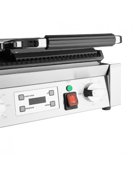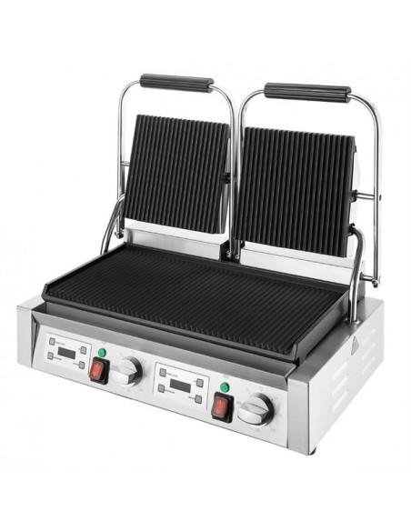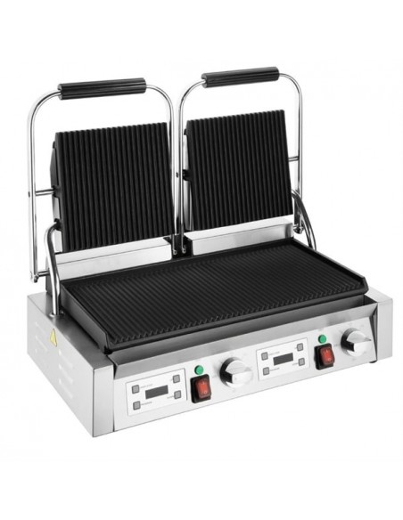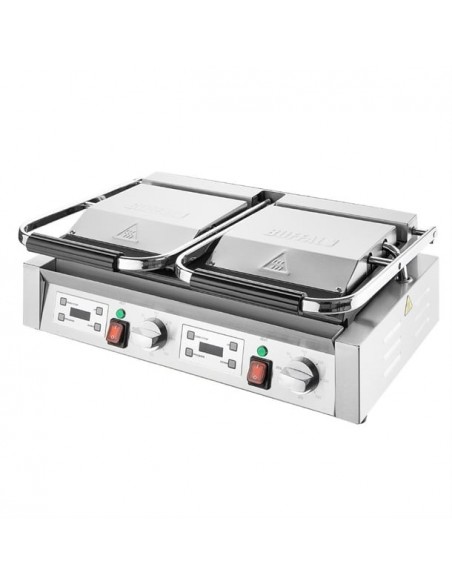With its rapid heat-up and generously-sized enamelled cast iron grilling surface, the Buffalo double ribbed contact grill is a powerful and reliable addition to professional kitchens. Perfectly designed to produce great tasting food, the grill features independent accurate temperature controls and programmable digital timers for each side, so you'll always get consistent results, whether you're making traditional breakfasts or tempting takeaway snacks.