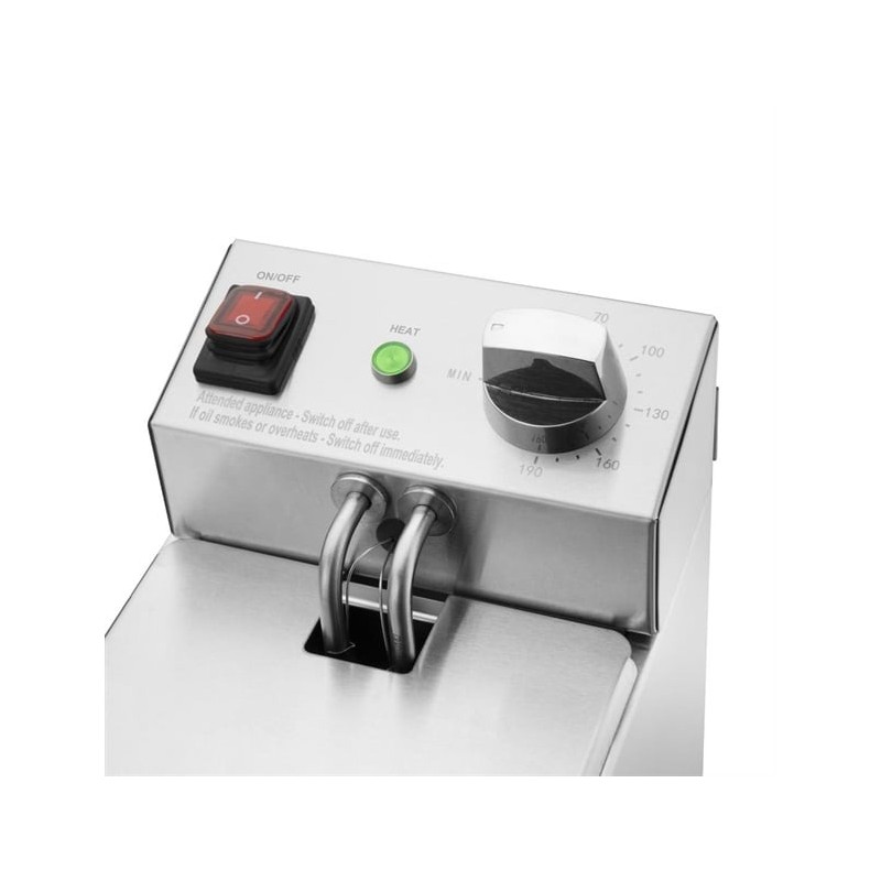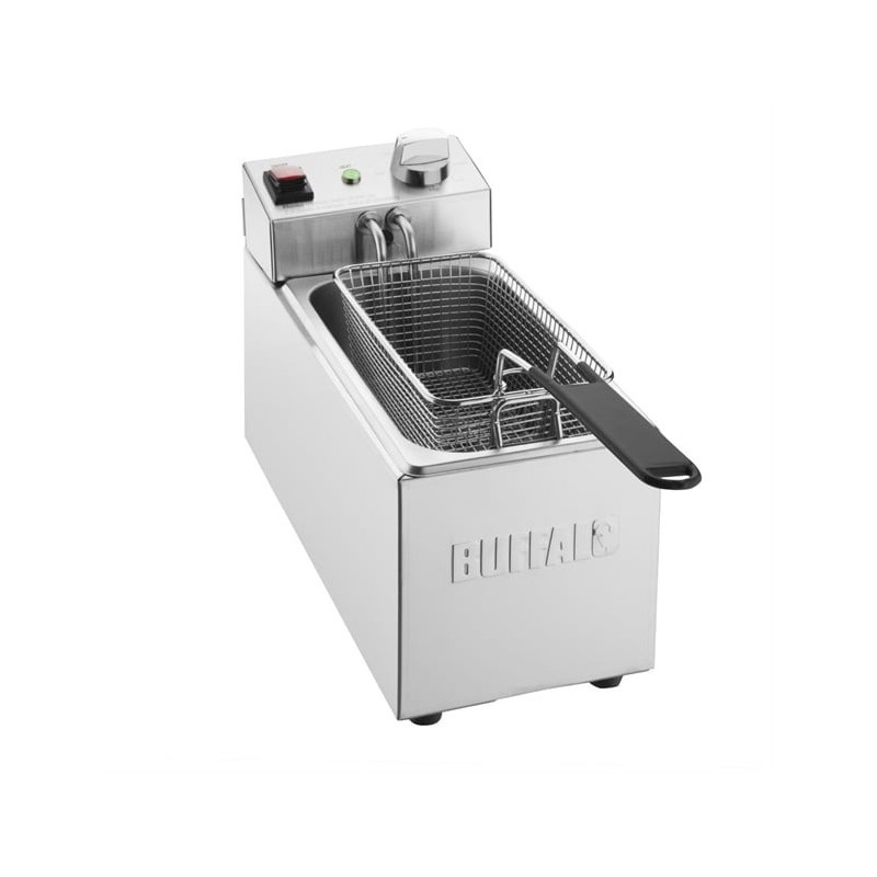 Powerful yet highly compact, the three litre Buffalo countertop fryer is the perfect appliance for low demand sites or kitchens with limited space. Designed to be easy to use yet versatile, the fryer lets you produce deliciously crispy fried foods with ease, thanks to its powerful 2kW element and simple dial thermostat control.