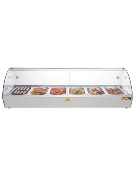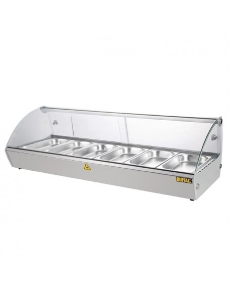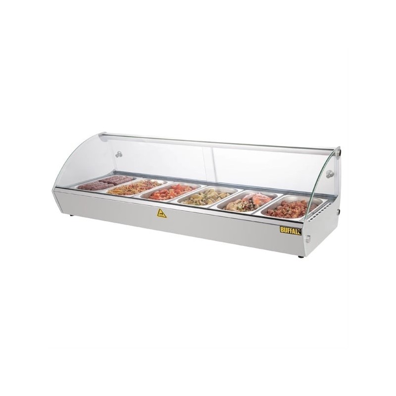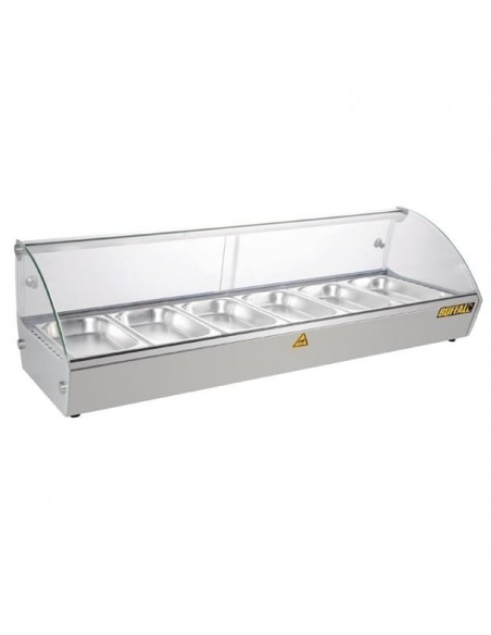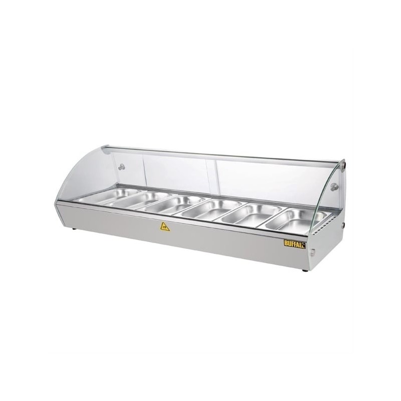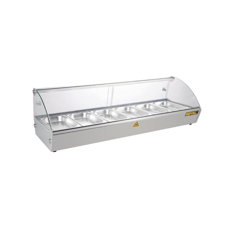 Stylishly showcase and hold your hot food selection with the Buffalo heated display unit. At nearly 1.2 metres wide, there's space for up to six 1/3rd size gastronorm pans, giving you plenty of room to offer a wide variety.