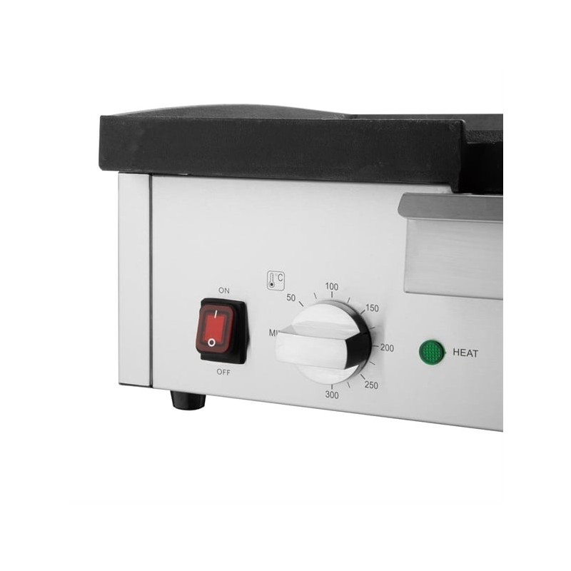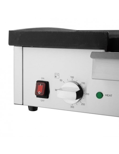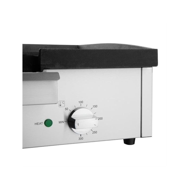 With its heavy duty die-cast 555x264mm iron cooking plate and 3kW of cooking power, the Buffalo extra wide electric griddle is a superb high capacity solution for making any breakfast or dinner service a success.