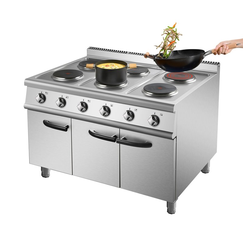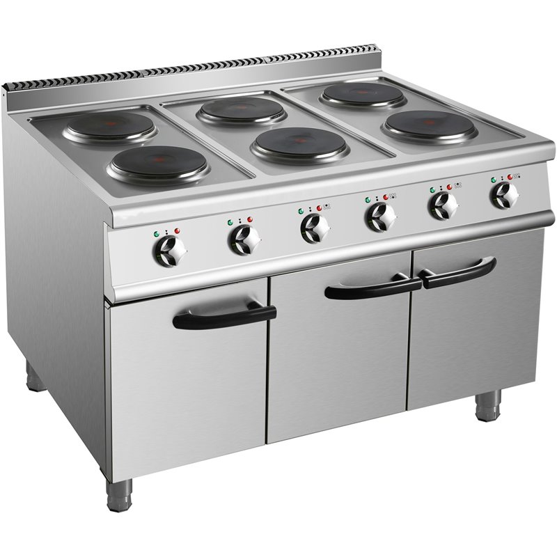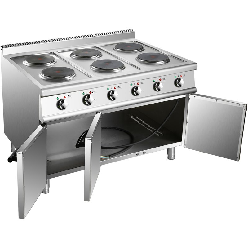 Commercial Electric Cooker 6 Burners with Cabinet Base 6x2kW 700mm Depth | Stalwart DA-HRQ762