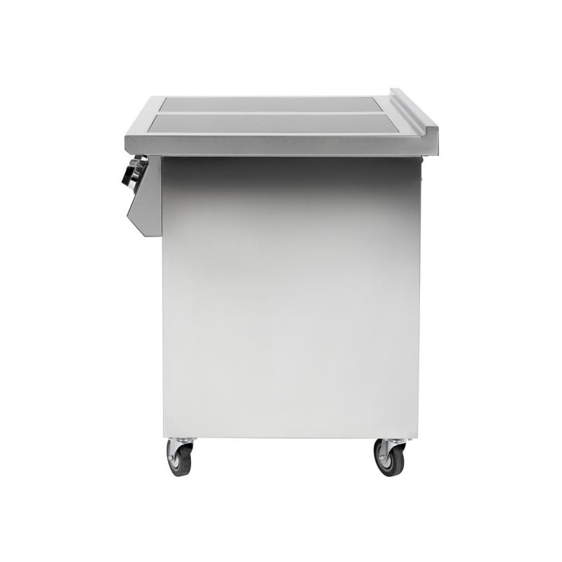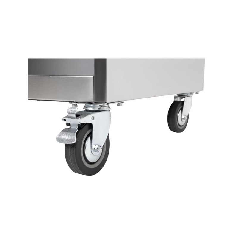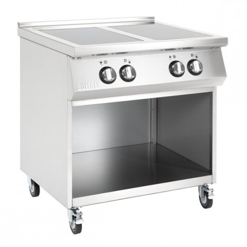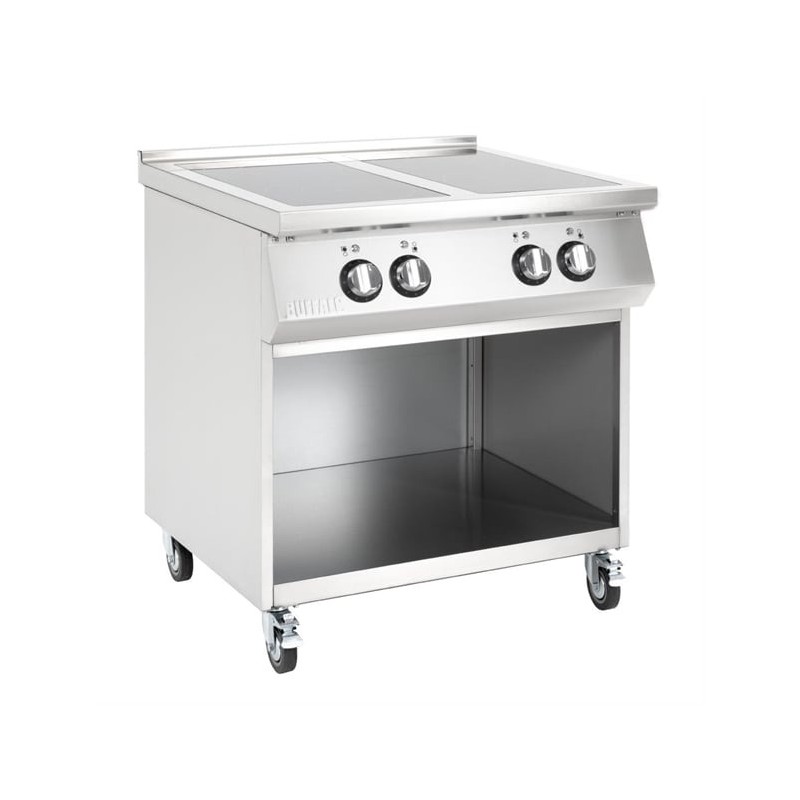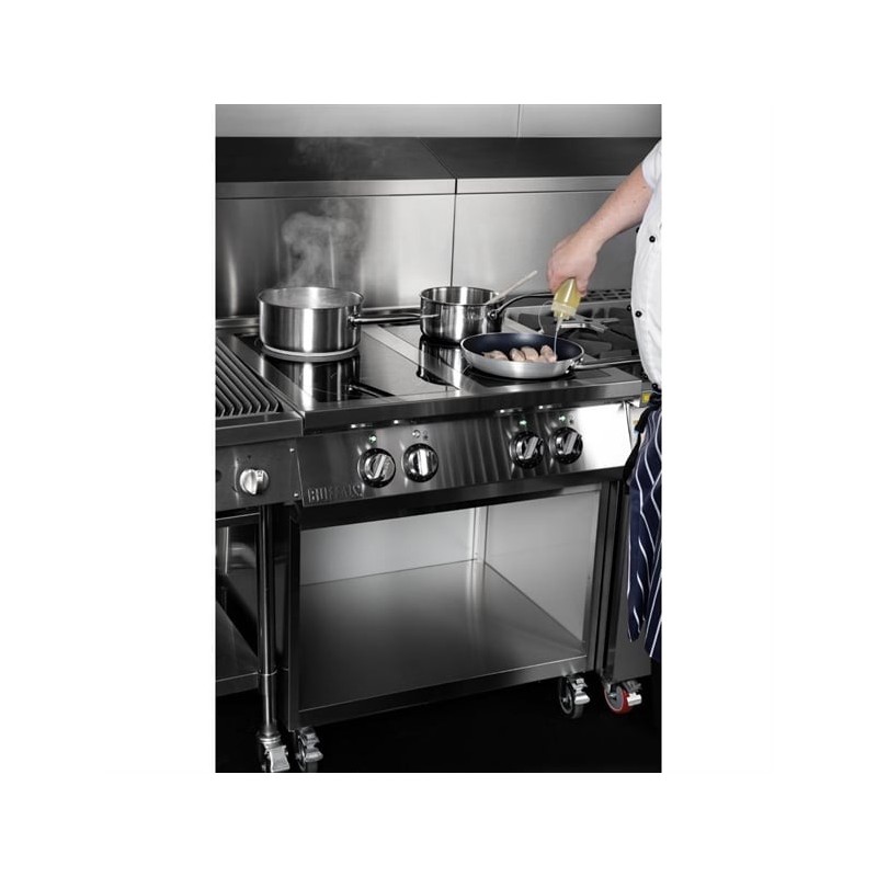 The hob is positioned on a handy open base with castors, providing valuable additional storage and making it easy to move around when required. And thanks to the strong stainless steel construction, the whole unit is easy to clean and maintain.