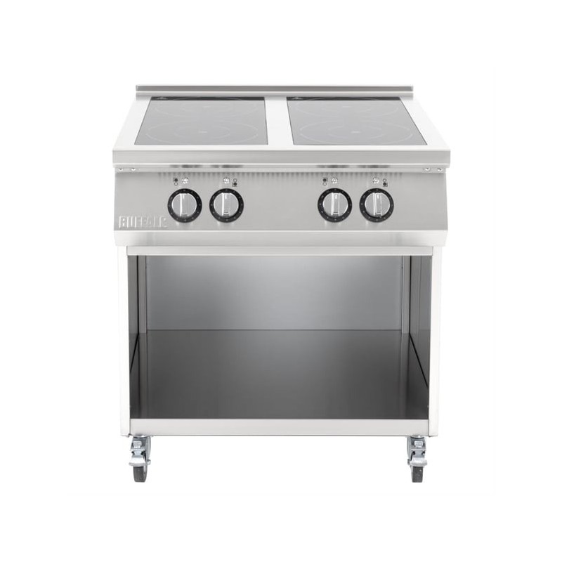 Bring the energy-saving efficiency of induction cooking into your pro kitchen with the Buffalo freestanding 4 zone induction hob. By combining user-friendly controls with high performance cooking, the hob is a great choice for cooking a huge variety of dishes, all whilst using much less energy in comparison to traditional gas or electric alternatives.