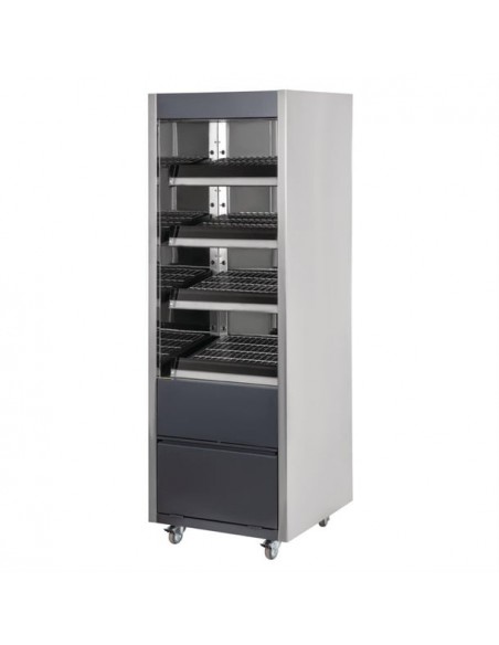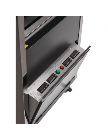 Made in the UK, the Buffalo heated merchandiser is a great front-of-house solution specifically designed to help boost sales of hot snacks. Whether you're offering pies, pasties or hot filled rolls, the Buffalo keeps it at the perfect serving temperature, whilst also highlighting products with efficient LED lighting. Operation couldn't be easier, as each of the four shelves can be independently set with separate temperatures - great if you're offering items which should be sold at different temperatures. Uses a single 13A plug for power.