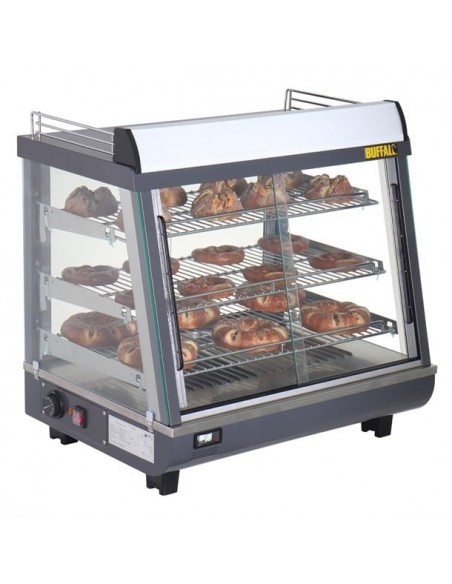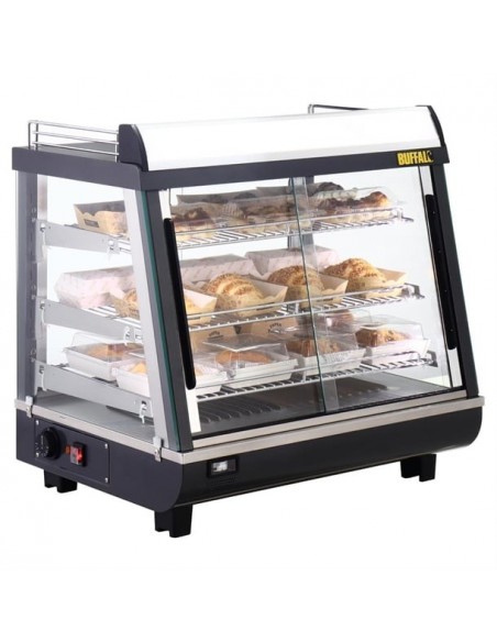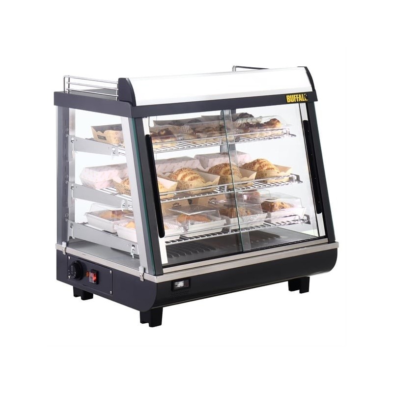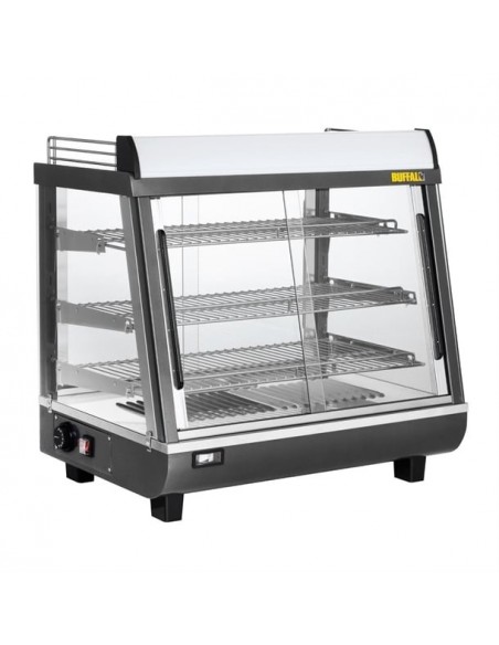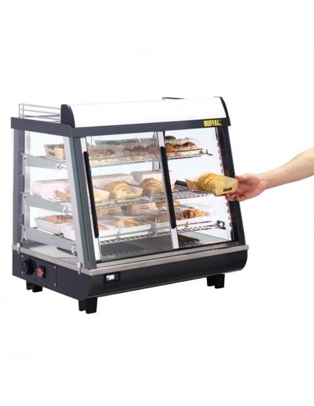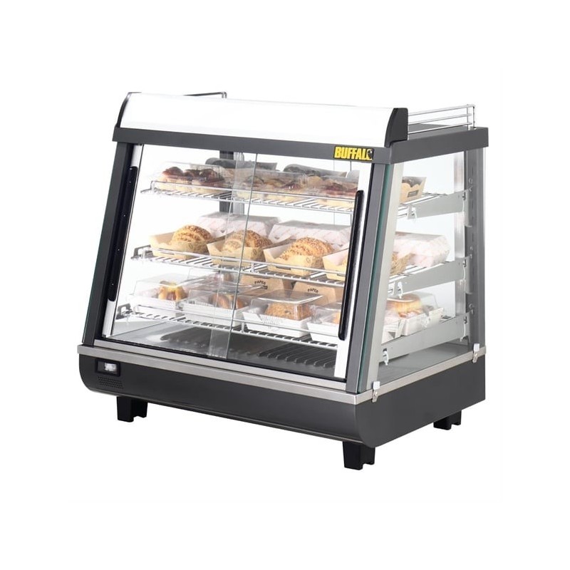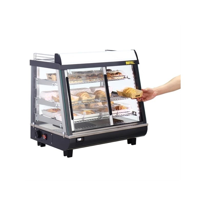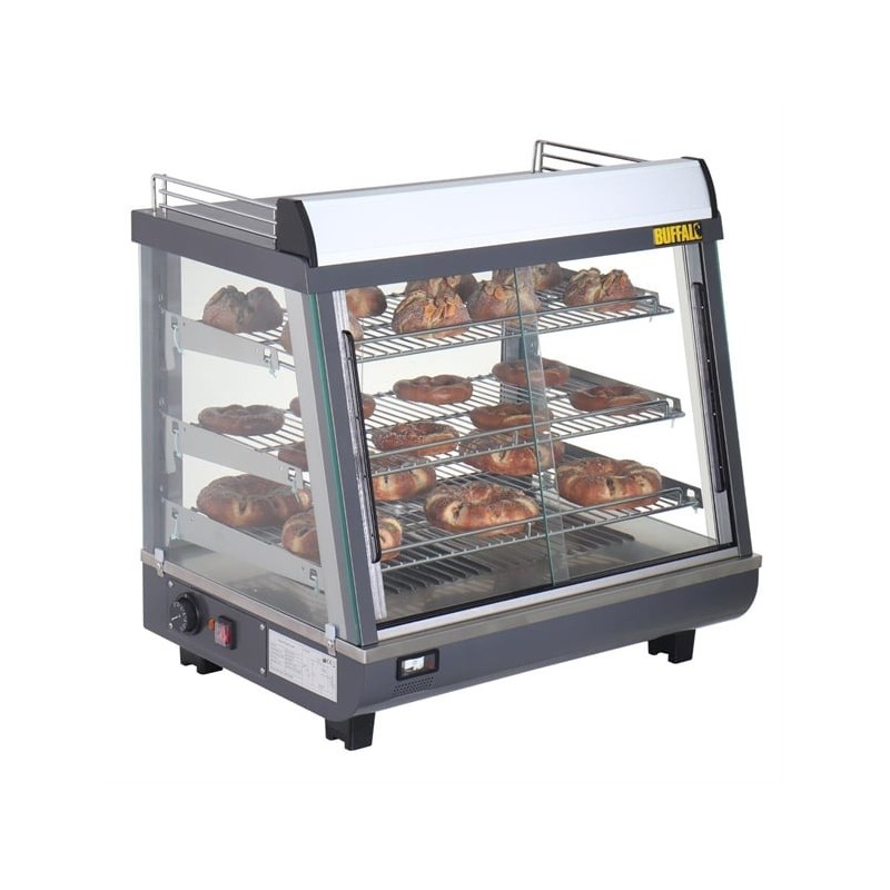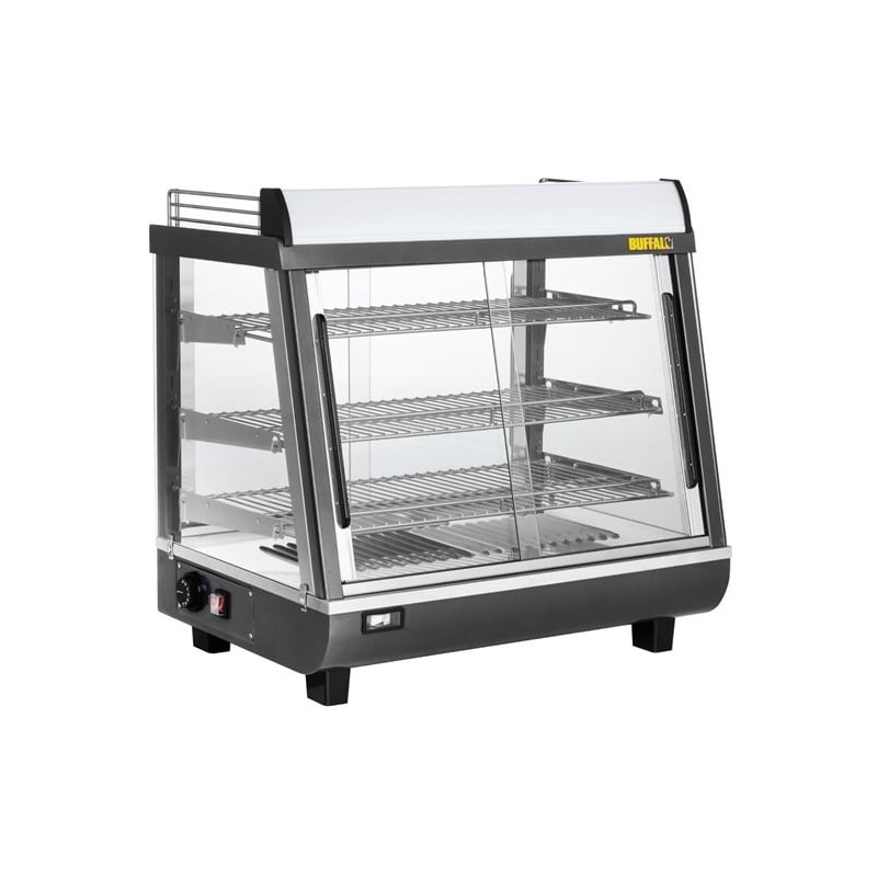 The Buffalo front and rear door heated merchandiser is a great way to attractively display your best-selling hot foods whilst keeping them at the perfect serving temperature for extended periods. Designed for reliability and performance, the merchandiser offers up to 96 litres of space over three adjustable shelves, all attractively showcased with stylish internal lighting.