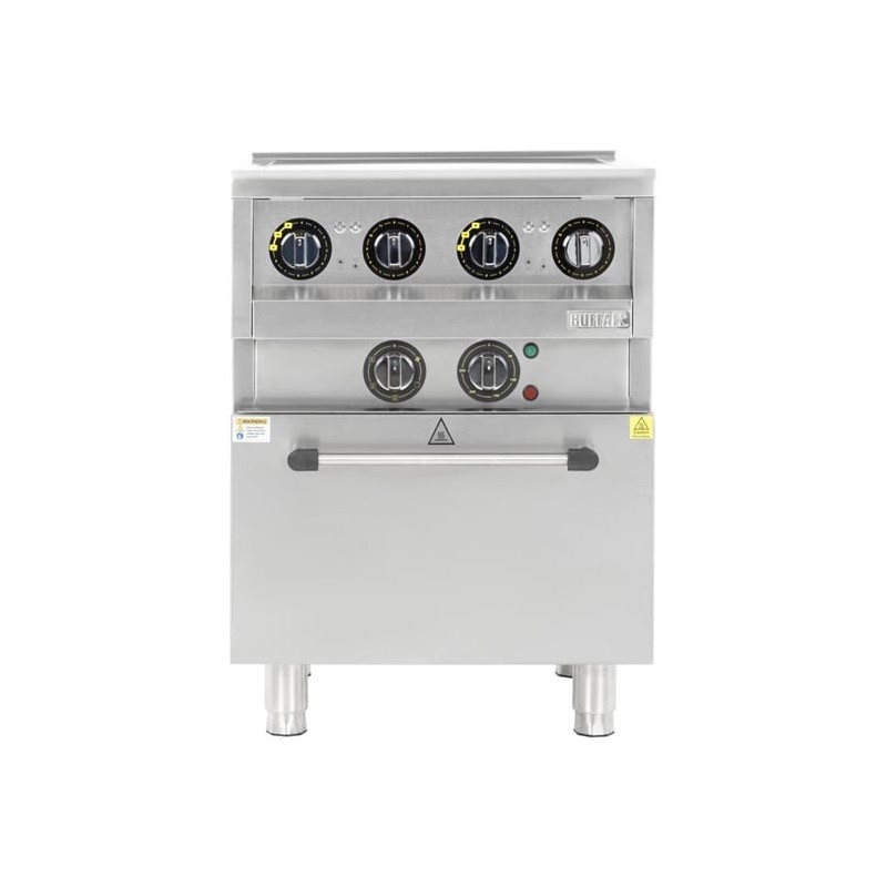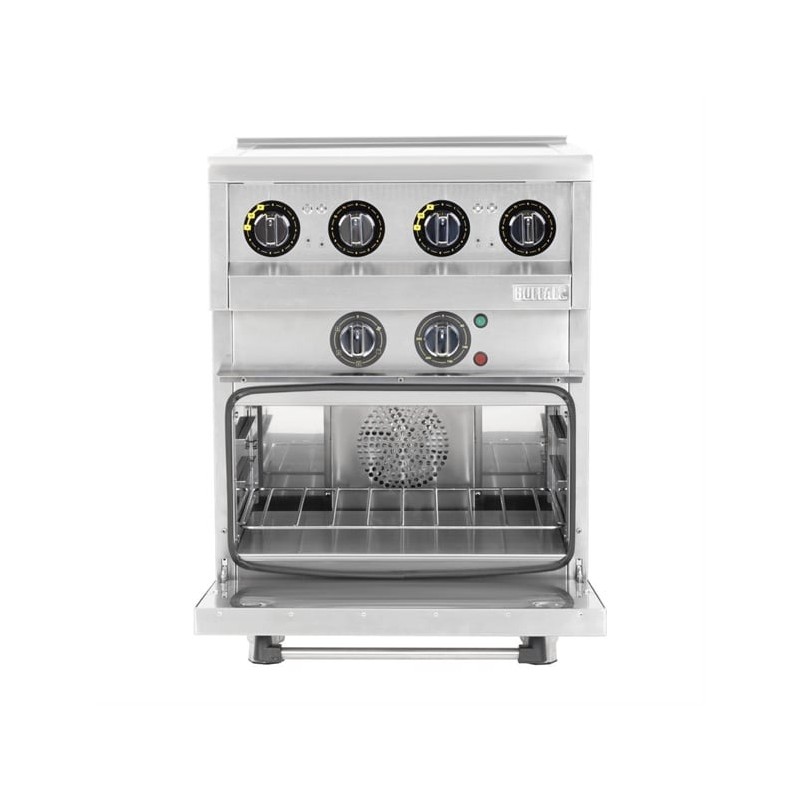 The Buffalo 600 Series induction range cooker is a heavy duty cooking solution for busy professional kitchens. Combining an efficient four zone induction hob with a powerful three phase convection oven, the Buffalo induction range provides impressive flexibility, allowing you to cook a wide variety of dishes in one station.