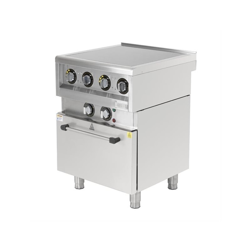 - Energy efficient induction hob mounted on powerful high capacity fan oven