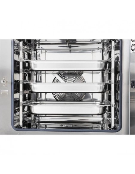 With its generous 7x 1/1 gastronorm tray capacity, the Buffalo combination oven provides an impressive amount of space for its size. Easily adjustable shelves and gastronorm compatibility ensure you can quickly transfer trays between stations to save time.