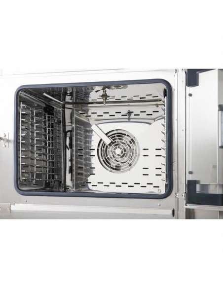 The combi oven makes everyday operation effortless too. The front-mounted 5" full-screen touch panel gives you the ability to set and run multi-stage cooking programs, ensuring different dishes are all finished at the same time. Up to 99 programs with up to 6 stages each can be set, or choose from one of the 40 pre-set classic options such as bacon, croissants, roast beef or chocolate brownies.