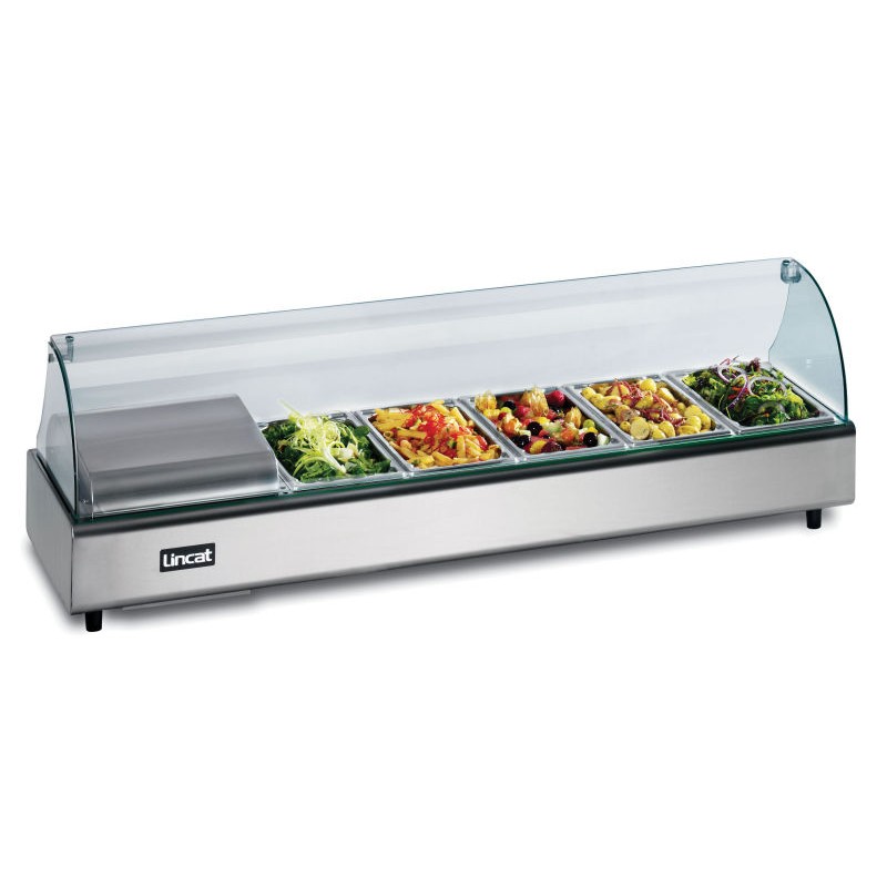 The Lincat FDB5 is a food display bar which is hygienic and easy to clean energy efficient close fitting gastronorm containers precise thermostatic control of cabinet temp. Well base and side refrigeration ensures even cooling throughout bar length.