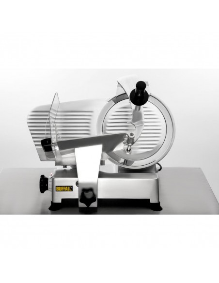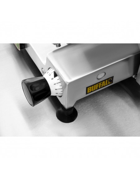 Save time and reduce waste with the sturdy and reliable Buffalo meat slicer. Featuring a large 300mm blade with integral sharpener, you can easily and precisely slice large quantities of beef, ham, poultry or vegetables with the minimum of fuss.