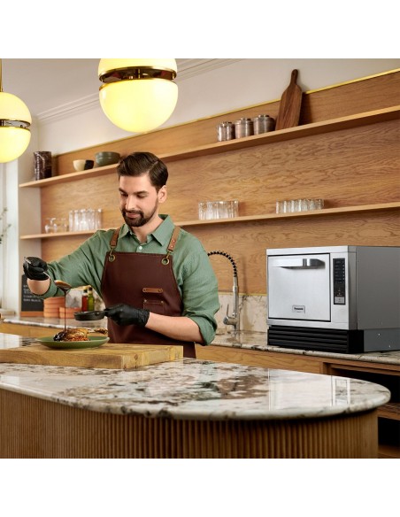 The Panasonic SCV3 High Speed Convection Oven is the ideal solution to cook, toast, bake, grill and reheat a wide range of fresh or frozen foods, such as toasted sandwiches, pastries or pizza, in fact anything needing a crisped, browned finish. Increase customer satisfaction by reducing waiting time. The SCV3 High Speed Convection Oven ensures great results and enhanced profitability.