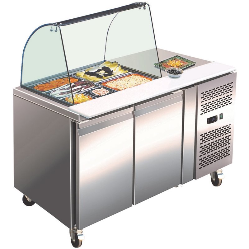 Professional salad chiller with rounded glass top. A perfect addition if you're prepping pizza, sandwiches, wraps or salads.