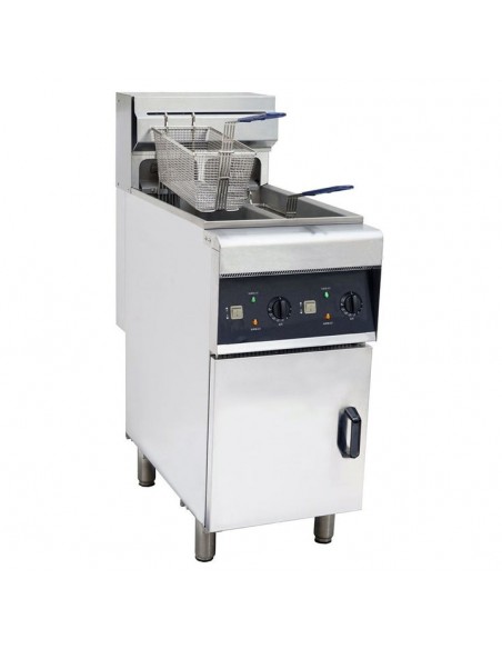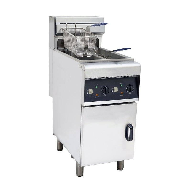 Equipped with a powerful electric heating element, this fryer ensures rapid heating and precise temperature control, allowing you to achieve the ideal cooking conditions for various menu items. The freestanding design adds flexibility to your kitchen layout, making it easy to integrate into your existing workspace without sacrificing valuable counter space. User-friendly controls and safety features make operation straightforward, while the fryer's compact footprint makes it suitable for a range of kitchen sizes.