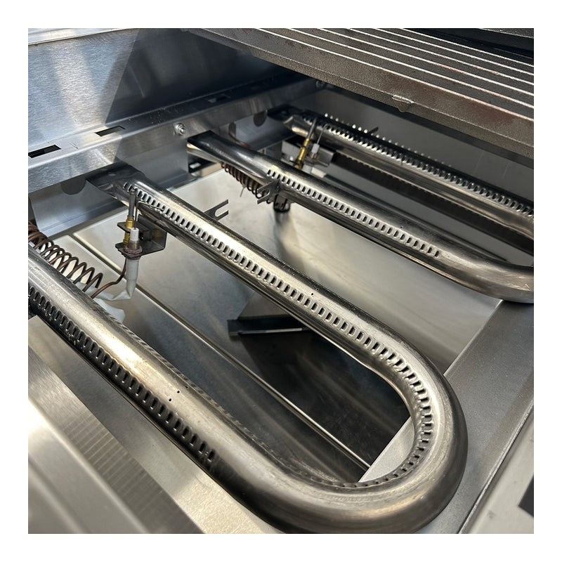 These compact and efficient cooking devices features a series of gas-powered U-shaped steel burners (each 30,000BTU/hr) or infrared elements positioned beneath a grate or grill surface, controlled every 12” width. They are specifically engineered for high-temperature grilling and searing, making it ideal for cooking a variety of foods such as steaks, burgers, chicken, seafood, and vegetables.