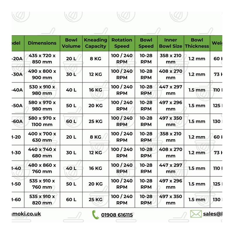The Hamoki Spiral Mixers are robust and versatile kitchen appliances, designed to meet the demanding needs of commercial kitchens and bakeries.