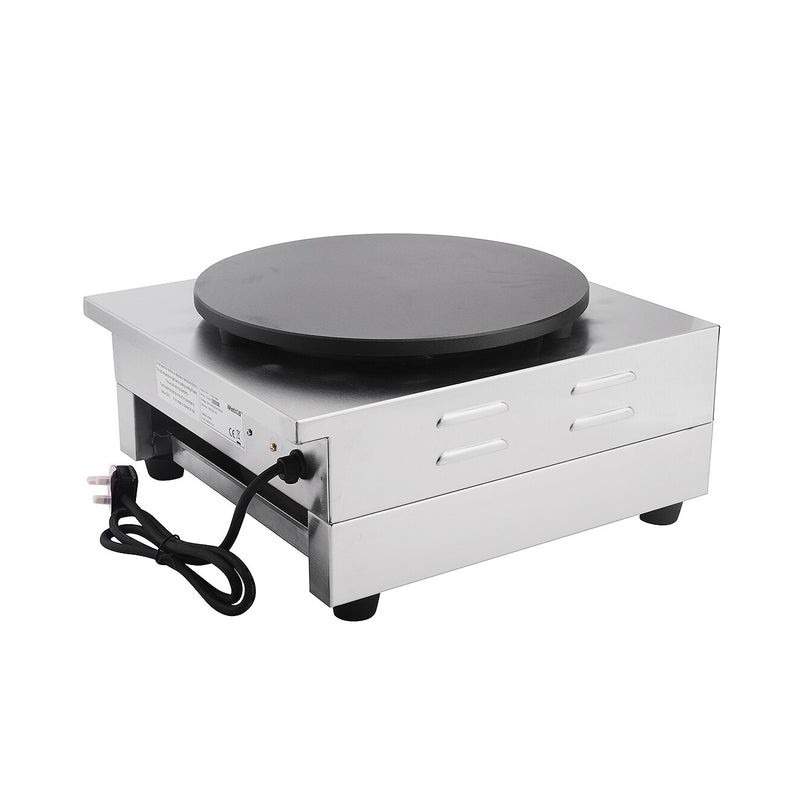 Designed for simplicity and efficiency, our crepe maker feature a user-friendly interface, star-shaped burners distributing heat evenly ensuring consistent and uniform heating across the cooking surface, guaranteeing evenly cooked crepes every time. The plate is made from smooth, hard enamel which is easy to clean and heat up time is only 10 minutes. The non-stick cooking surface prevents batter from sticking and makes for effortless flipping, ensuring that your crepes are beautifully thin and intact.