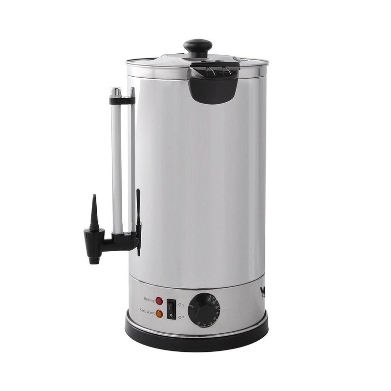 The Hamoki Water Boiler combines convenience and simplicity in its design. Featuring easy to use controls and stainless steel twin walled construction, the water boiler is effortless to fill, operate and clean. The water urn also offers the convenience of not having to be plumbed in, so it's perfect for light duty mobile catering or for being used in areas without a direct mains supply. For safety, the urn also features a water level metre and an automatic boil dry safety cut-off, which is easily reset using the handy base mounted button. Ideal for light duty commercial or home use.
