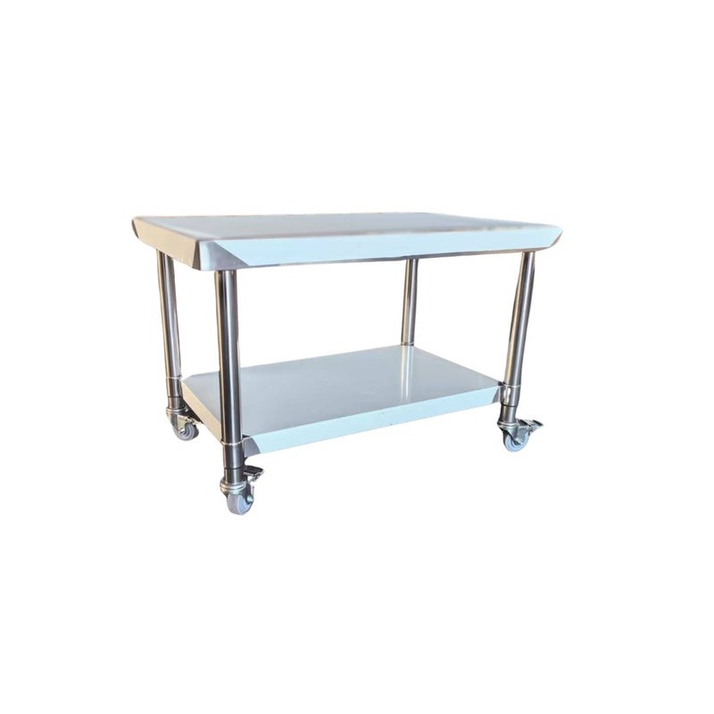Equipped with 4 lockable casters and an under shelf for practical storage, these small but mighty tables are efficient, reliable, and extremely easy to clean - perfect for use in any commercial kitchen and food preparation area.