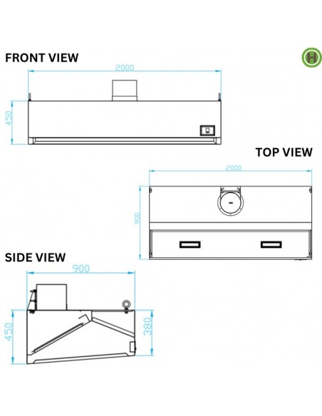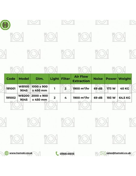 191002 - Hamoki Wall-Mount Extraction Canopy / Range Hood 2000 mm