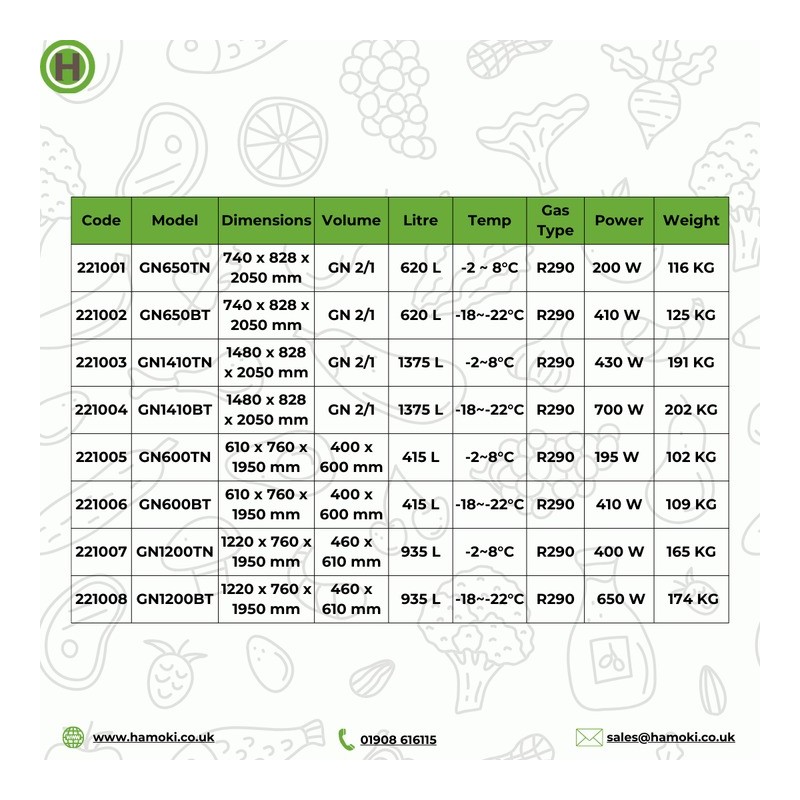 The Hamoki Upright Refrigerated Vertical Cabinets are compact and efficient refrigeration appliances suitable for commercial and industrial settings, typically within restaurants, supermarkets, convenience stores, and other food service establishments to store a wide range of perishable items such as food ingredients, beverages, and frozen goods.