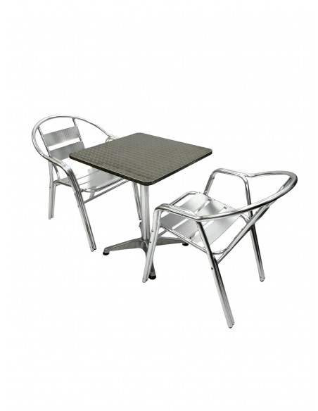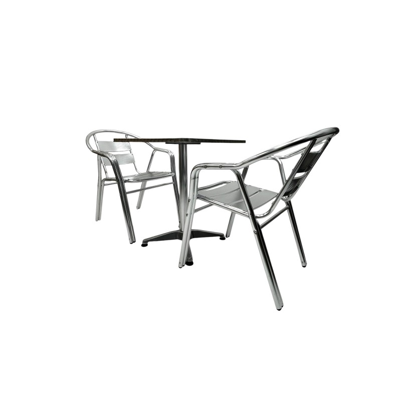 Our premium quality Aluminium Patio Bistro Set comprising of one 60cm square aluminium bistro table and two of the premium double tube aluminium chairs.