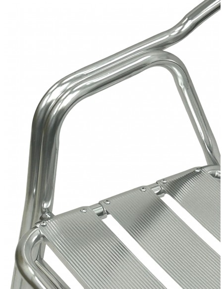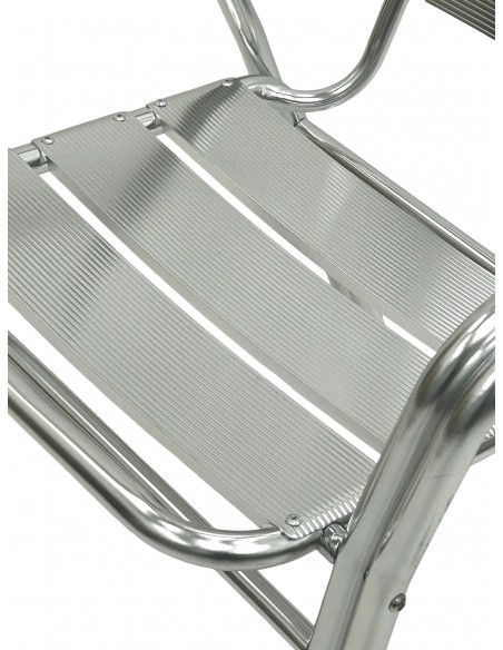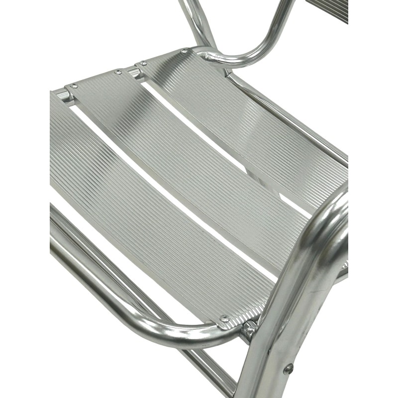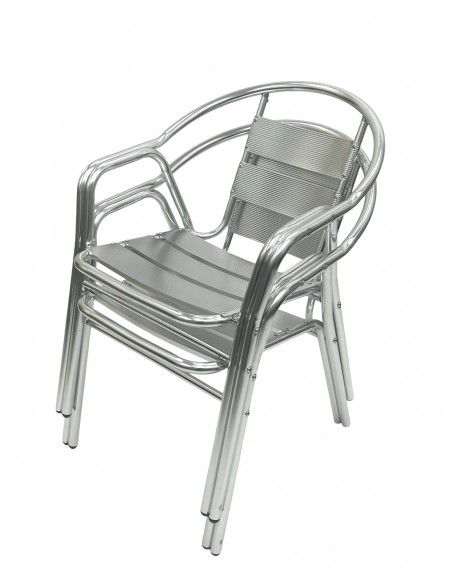These aluminium bistro chairs are suitable for use in the garden or for cafe’s, fish & chip shops, large sporting events, festivals and restaurants etc. They have plastic feet to prevent scratching the floor. The seat height is 43 cm and they stack tightly for storage.