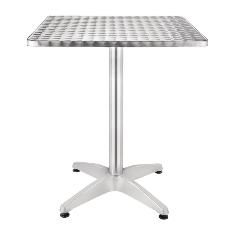 These Aluminium tables are robust and rustproof, making them perfect for any pavement, terrace, patio or alfresco setting. Each table has a pedestal design with four legs, each of which has an adjustable plastic foot to prevent and markings on the floor. These tables are very versatile and can be used with almost any chair we have listed in our store.