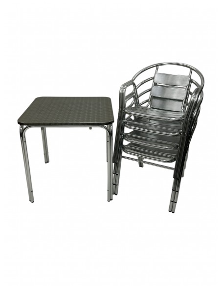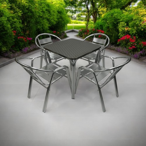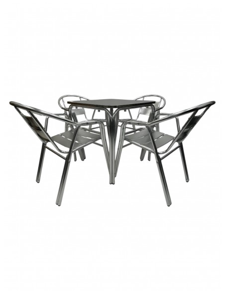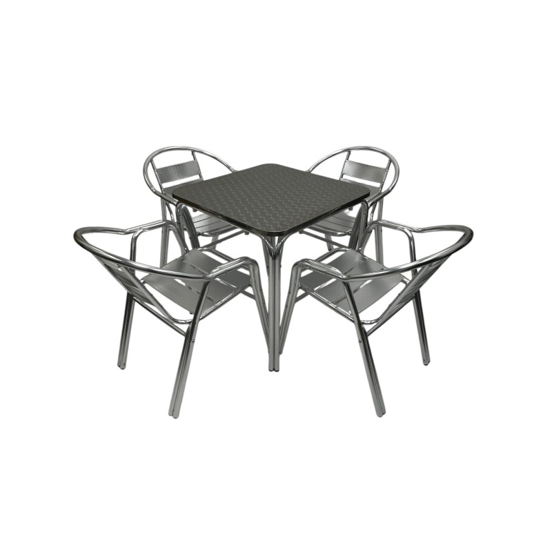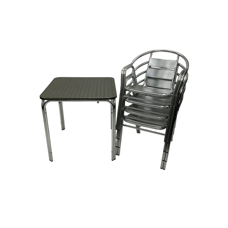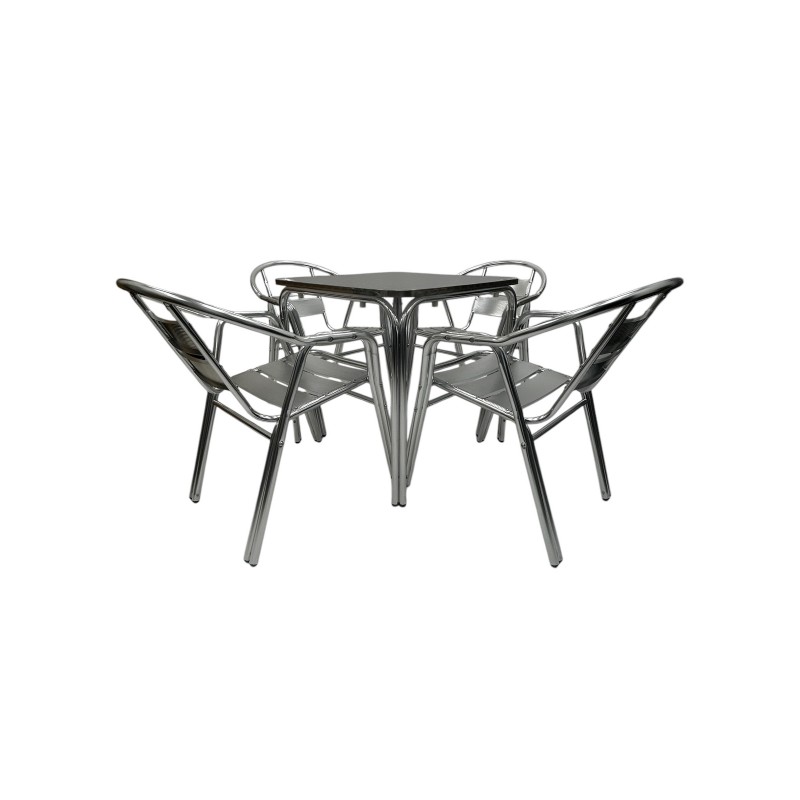 Our premium quality Aluminium Commercial Cafe Set comprising of one 70cm square aluminium bistro table and four of the premium double tube aluminium chairs.