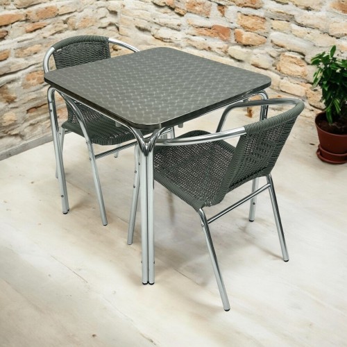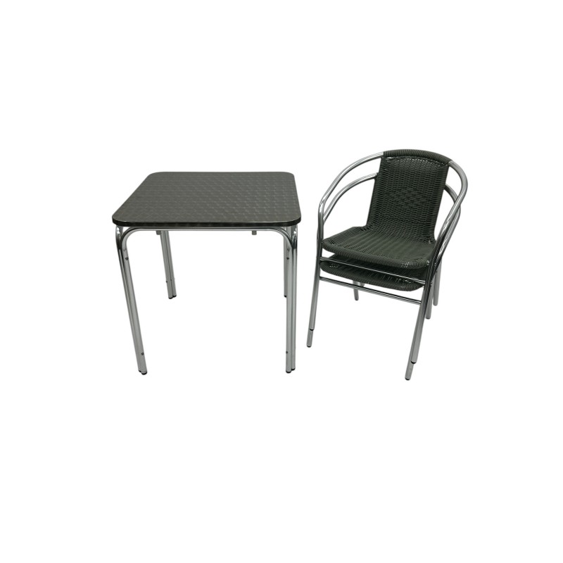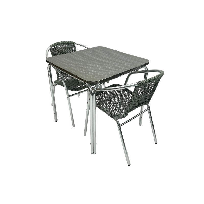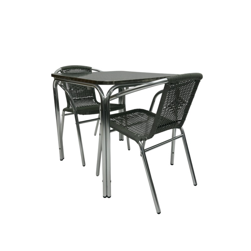 Our BE Furniture Grey Rattan Bistro Furniture Sets comprising of one 70cm square aluminium bistro table and two of the grey rattan aluminium chairs.
