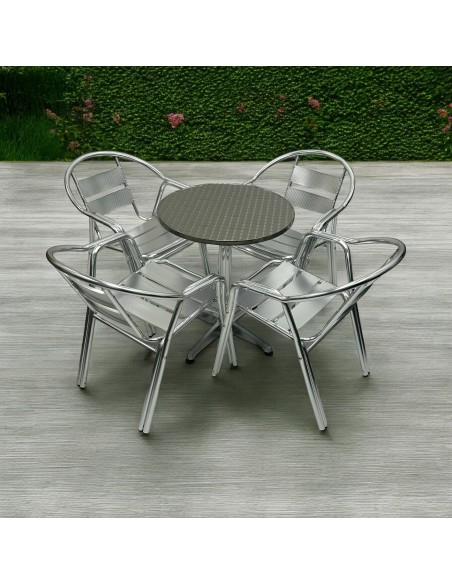 Our premium quality Aluminium Patio Set set comprising of one 60cm round aluminium bistro table and four of the premium double tube aluminium chairs.