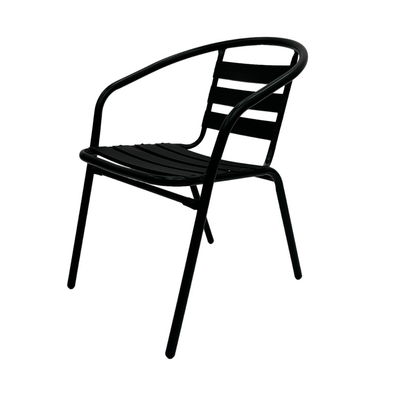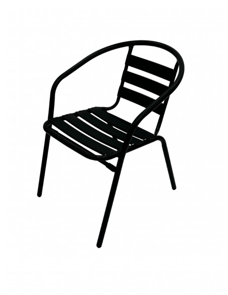 These black steel garden chairs are suitable for use in the garden or for cafe’s, fish & chip shops, large sporting events, festivals and restaurants etc. They go well with our range of bistro tables and have plastic feet to prevent scratching the floor. The seat height is 43 cm and they stack tightly for storage.